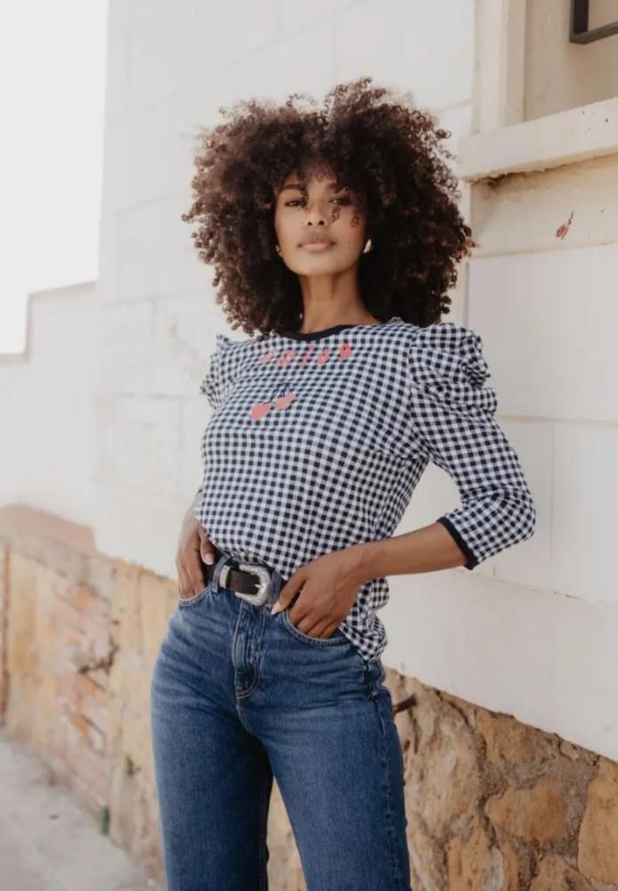 Camiseta Animosa Amiga cuadro vichy negro