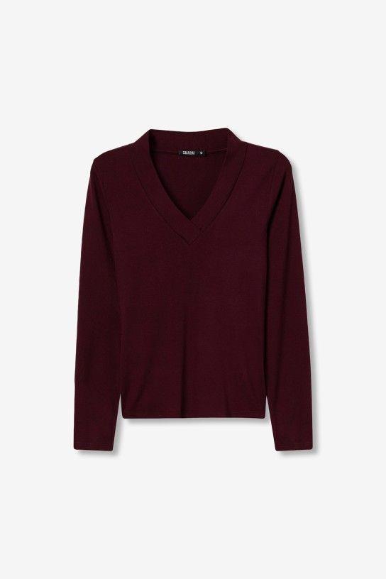 Camiseta de manga larga super slim fit. Escote en V profundo. Tejido elástico.