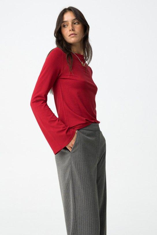 Camiseta de manga larga slim fit. Escote redondo ajustado. Costuras laterales con moldeado ligero. Tejido elástico.