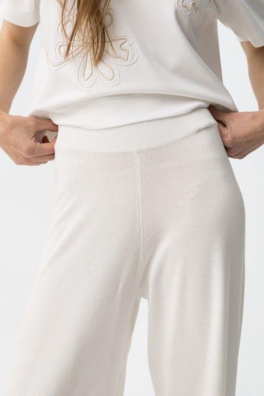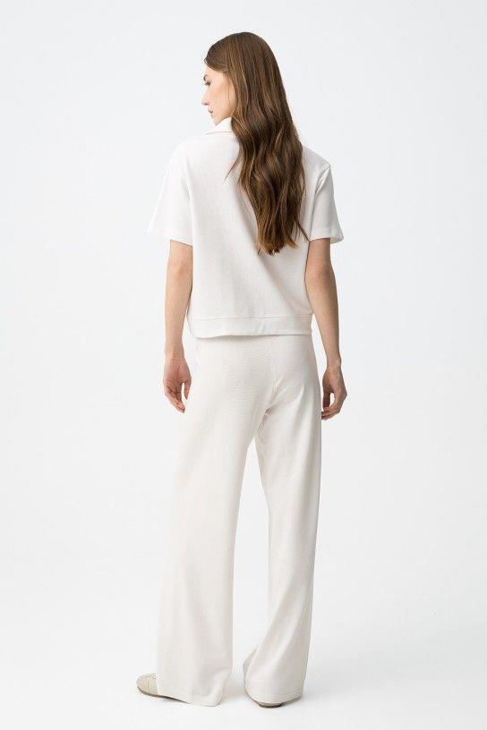 Pantalón de corte ancho en color crudo, cintura alta y caída fluida, estilo minimalista y relajado. 70% VISCOSE 30% POLYESTER