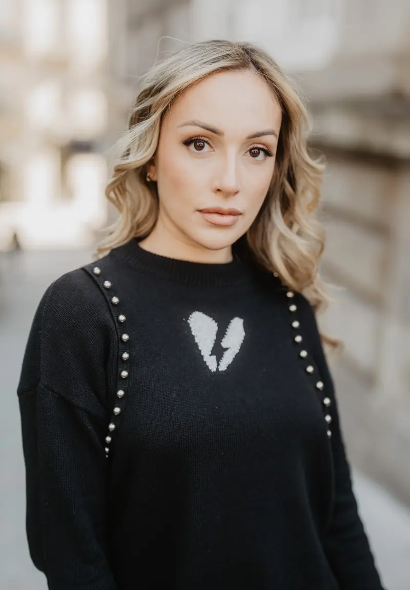 Jersey de punto con detalle de tachuelas y aberturas en los laterales. Funciona a la perfección con tu mejor prenda inferior Animosa, pero lo hemos diseñado a conjunto con la falda de la misma línea. El corazón atravesado por el rayo simboliza la fuerza emocional. Diseñado y producido cuidando hasta el más mínimo detalle. Todas nuestras prendas llevan un marcapáginas con un texto inspirador.