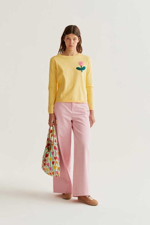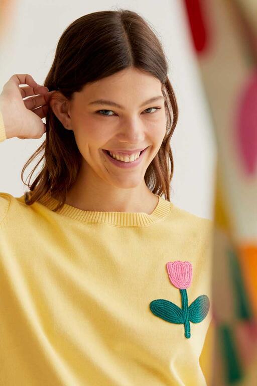 Jersey Compañía Fantástica amarillo con bordado de tulipán rosado