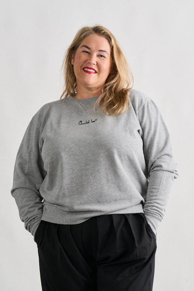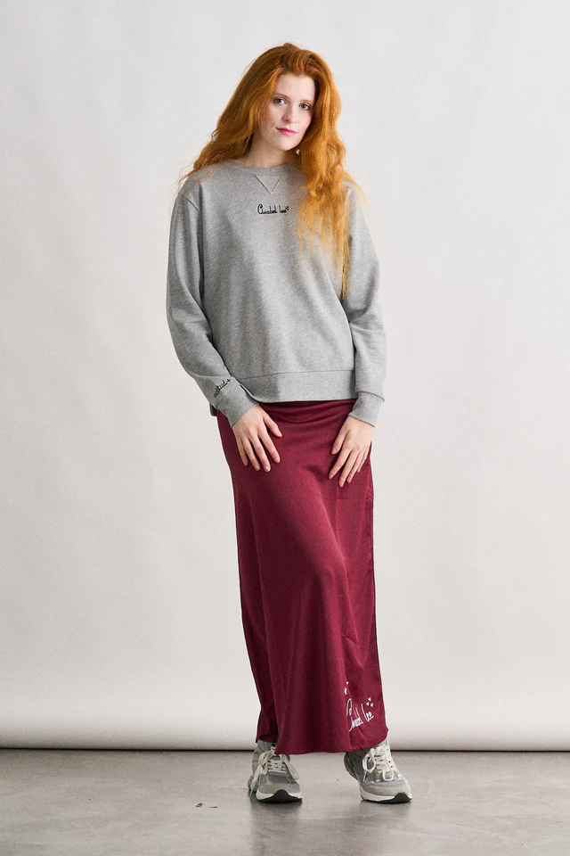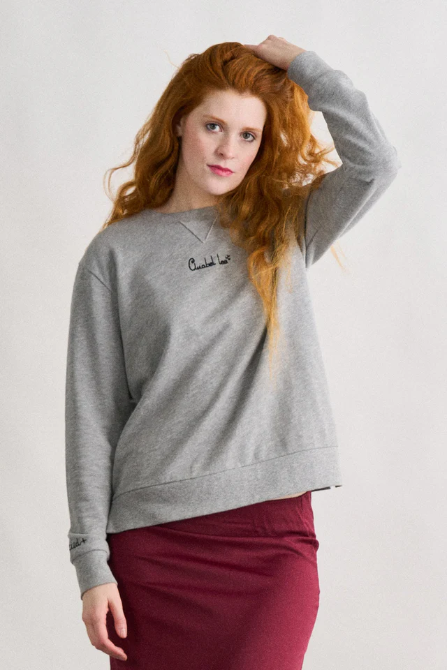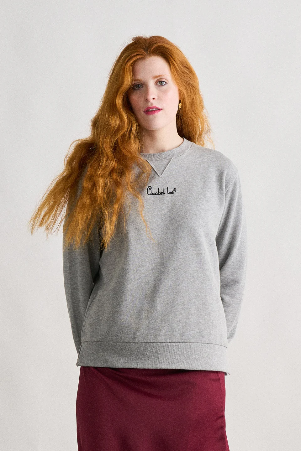 "Anabel Lee" -Sudadera de corte recto y aberturas laterales. -Manga larga y cuello redondo. -Detalle de logo bordado en pecho y texto bordado en manga.
