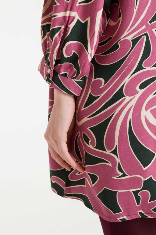 Vestido corto con estampado Pastures. Cuello redondo y manga larga terminada en puño con botón. Cierre posterior con botón. La modelo mide 179 cm y lleva la talla S.