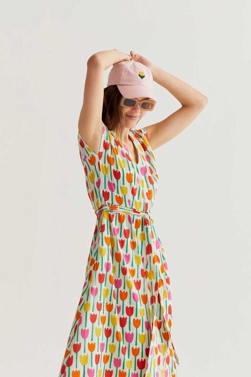 Vestido midi Compañía Fantástica con estampado de tulipanes